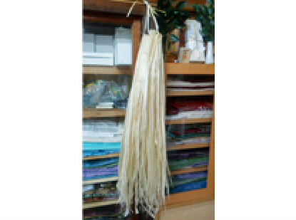 参拝するときに、鳴らす鈴についている3本を『螺旋』状に織り込み、縄状態するための布です。